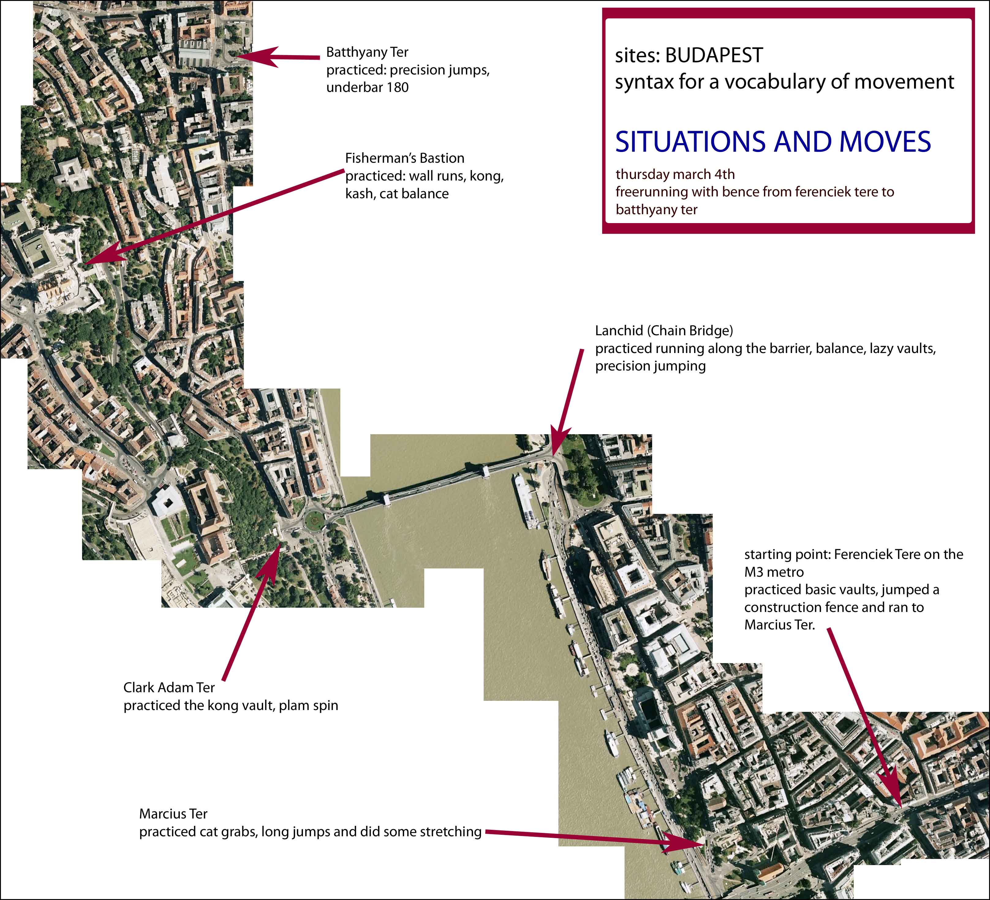 Cognitive shifts, explored in my research as bodily understandings seem important exactly because they force us to relate to our environments in new ways. With potential implications for wayfinding, urban planning and architecture, the type of spatial cognitive shift that comes out of parkour could give us a new window into user behavior and a new interpretation of what is “usable” and accessible in the built environment. These understandings are known only spatially and bodily, they must be performed and experienced. For now, it remains that when exploring the limits of the human scale, if we can go there with our bodies then we have a chance of going there with our minds.