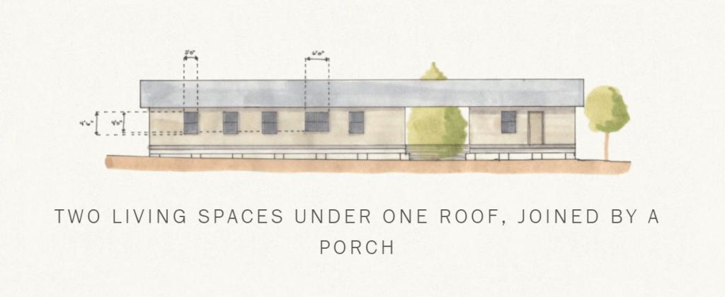 I’m drawn to building types that are flexible, developed incrementally and unitary in design. The American Dogtrot house as a historical style carries these attributes and I think it is worth exploring for the straightforward design and performance features it offers. The style has transcended frontier utilitarianism, recently becoming a framing device for embracing the landscape.